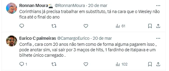 Se chegar proposta, o Corinthians deve vender Wesley?