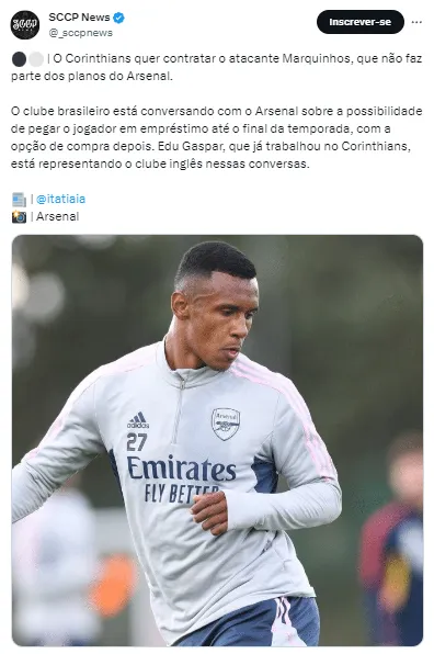 Além dessa boa relação com Edu Gaspar, a matéria da Itatiaia relata que o time inglês busca uma nova equipe para o jovem brasileiro de apenas 20 anos. Ele não está nos planos de Arteta para a equipe.