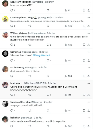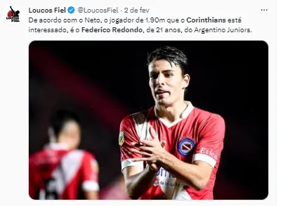Um dos nomes badalados que foi especulado no Corinthians foi o da jovem promessa argentina Federico Redondo, do Argentinos Juniors. Ele passou a ser especulado no Clube Paulista depois de uma declaração do presidente Augusto Melo.