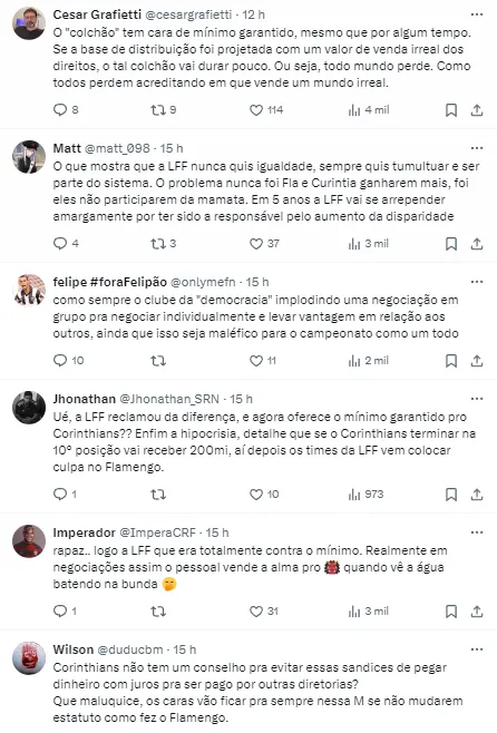 Logo que isso vazou, a Liga Forte Futebol, outro bloco de equipes, que estão se unindo para negociar os direitos de transmissão, fez uma proposta para que os dois times mudem de Liga. Até o momento, não se tem certeza do posicionamento dos dois gigantes paulistas.
