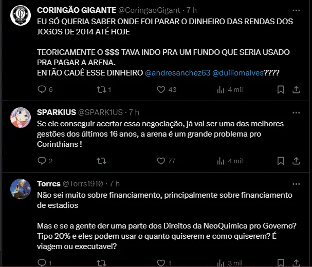 Além disso, R$ 356 milhões sairiam do acordo do Corinthians com a Hypera Pharma, que dá inclusive os naming rights do estádio corintiano. No entanto, o banco estatal recusou a proposta, dizendo ser ‘inviável’.