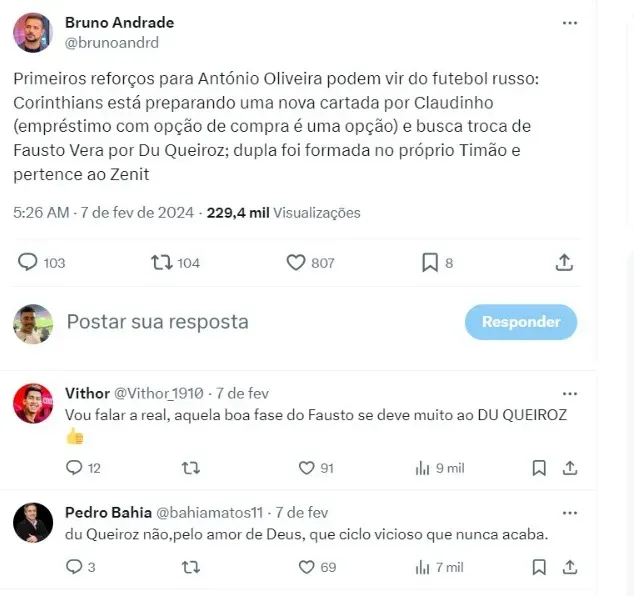 Outro nome questionado a Fabinho Soldado foi o de Claudinho. O meia está no Zenit, da Rússia, e interessa ao Corinthians. Apesar disso, o negócio não vai acontecer para agora, mesmo com o Timão de olho.