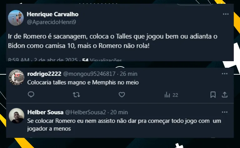 Por fim, um dos pedidos mais recorrentes da Fiel com a divulgação da provável escalação foi a presença de Romero. Mesmo com toda sua história, confira o que corintianos falaram na web: