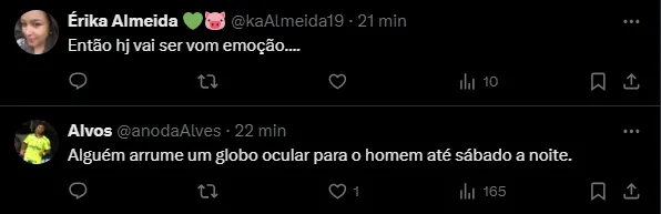 “TOME MEUS OLHOS RAPHAEL VEIGA”, “Alguém arrume um globo ocular para o homem até domingo a noite”, e “Tome meus olhos Veiga“, foram alguns dos comentários dos palmeirenses.