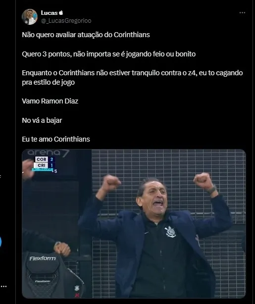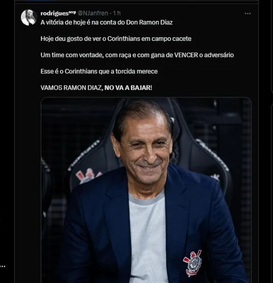 Confira a seguir a reação da torcida do Corinthians a vitória contra o Criciúma e a estreia de Ramón Díaz no banco de reservas do time do Parque São Jorge.