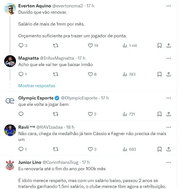 O jogador trata da sua segunda lesão no joelho, mas uma renovação não está descartada. O perfil ainda revelou para alguns seguidores nos comentários de que uma redução de salário ou uma renovação contratual pode acabar acontecendo.