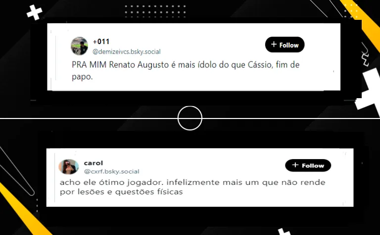 Ainda houve quem falou sobre o atual rendimento de seu ex-camisa 8 e o fato dele não atuar mais em alto nível: “Não consegue mais jogar”, disse outro. Porém, parte da Fiel seguiu elogiando o meia pelo que ele fez pelo Timão: “O rei jamais perde a sua coroa REInato Augusto é ídolo máximo do Corinthians”, pontuou outro.