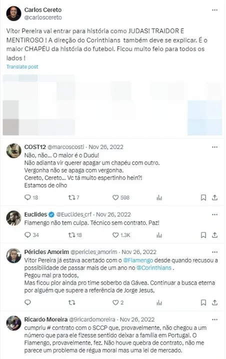 É impossível esquecer do caso envolvendo a sogra do técnico Vítor Pereira, no Corinthians, que teria sido o motivo pelo qual tomou a decisão de sair do do Clube ao final de 2022, mesmo com resultados aceitáveis.