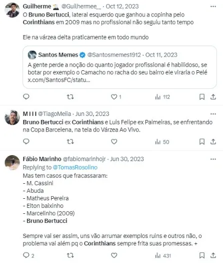 Porém, nem sempre é assim. Depois de erguer a taça da competição de base pelo Timão, Bruno Bertucci foi promovido aos profissionais, mas não vingou e, depois de ser pego no doping, aposentou em 2019, trabalhando em 3 empregos atualmente.