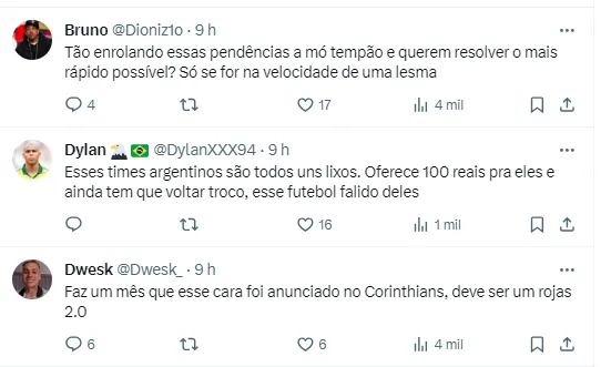 Enquanto todo o imbróglio de Garro está para ser resolvido, uma pendência com Fausto Vera também é uma das urgências da direção. O Corinthians vem recebendo críticas públicas do Argentinos Juniors por ainda estar devendo por conta da compra do volante, em 2022.