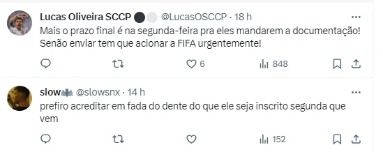 De acordo com o jornalista Márcio Reis, da Jovem Pan, a tendência é que sua situação seja resolvida já na próxima segunda-feira (5). O prazo limite para a inscrição de um jogador, conforme estipulado pela FIFA, chegará ao fim.