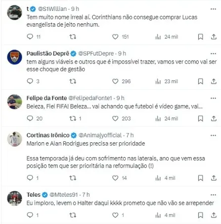 Diante disso, agora realmente o planejamento já pode ser colocado em prática de olho em 2024. Dessa forma, de acordo com o Blog do Macedo, uma lista de reforços foi sugerida ao grupo de Augusto Melo: