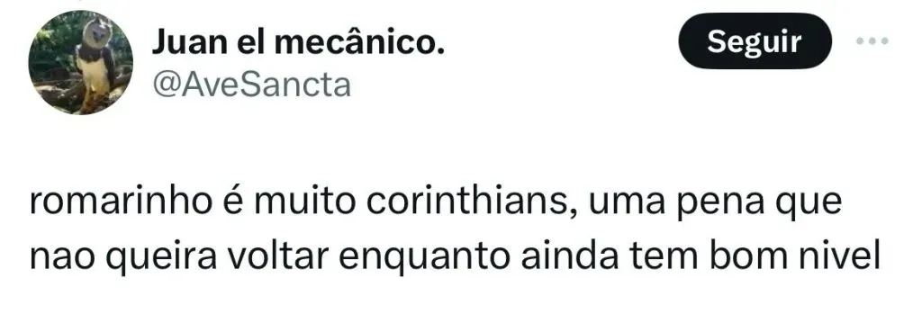 “Romarinho é muito corinthians, uma pena que nao queira voltar enquanto ainda tem bom nivel”, disse um torcedor. “Romarinho ou Rafael Brandino, qual dos dois tá mais ansioso pro Igor ser anunciado no coringao?, brincou um membro da torcida.