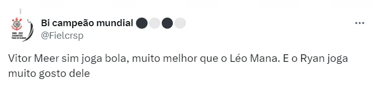 Com Ryan e Meer à disposição e sem Garro, esse deve é o provável Corinthians para o Majestoso, segundo o Globo Esporte: Cássio; Fagner, Félix Torres, Caetano e Hugo; Raniele, Fausto Vera (Matheus Araújo) e Maycon; Matías Rojas e Romero; Yuri Alberto.