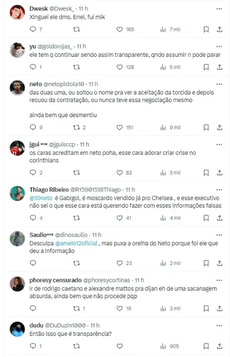(SIC) “Fala Fiel!! Eu tô recebendo vários comentários…alguns até ofensivos…sobre uma suposta negociação com o Marcelo Dijan. Fiel por tudo que passamos juntos nessa campanha vcs já deveriam saber que se trata de especulação e MENTIRA”, iniciou.