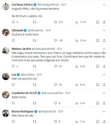 Nessa linha, Mano Menezes já fez um pedido especial ao mandatário corinthiano: de acordo com Samir Carvalho, o treinador solicitou a renovação do contrato do meio-campista Giuliano.