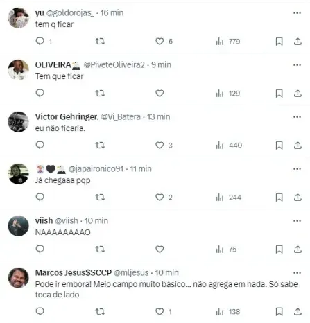 Enquanto o time paranaense já está rebaixado, o Timão garantiu permanência na elite e também participação na Copa Sul-Americana de 2024. Dessa forma, é esperado que movimentações passem a ser vistas em breve.