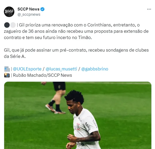 Contudo, durante esse período, onde o seu contrato se encerra no final deste ano, ele já pode assinar um pré-contrato com outro clube. Inclusive, o jogador recebeu sondagens de clubes brasileiros da Série A. Ou seja, se o Timão não se mover, poderá perder o jogador.