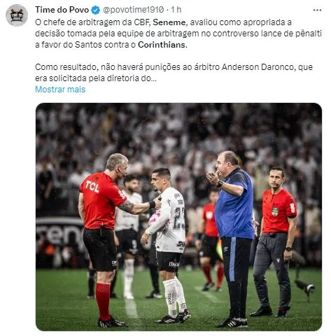 No último domingo (30), o Corinthians estava a um passo de conquistar três pontos importantes diante do Santos, mas um pênalti nos acréscimos acabou possibilitando o empate do rival. O lance gerou uma onda de reclamações e polêmica.