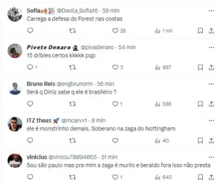 Vale lembrar que Murillo chegou ao Forest em agosto em um negócio que rendeu 12 milhões de euros (R$ 64, 4 milhões na época) aos cofres do Timão, sendo, na época, o zagueiro mais caro a ser vendido.