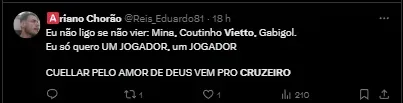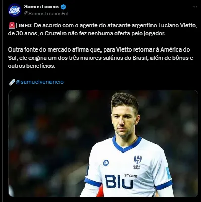 Depois de muitas especulações, algumas até davam conta de que a Raposa já teria feito proposta e estaria perto de fechar a contratação, uma atualização importante foi trazida pelo setorista Samuel Venâncio.