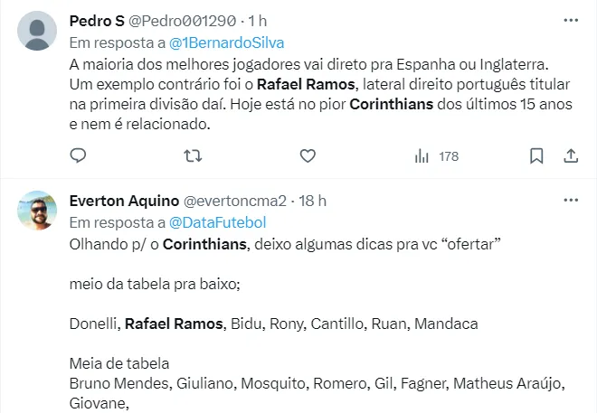 Em abril de 2022, o lateral-direito Rafael Ramos foi contratado pelo Corinthians. A contratação do defensor português foi um pedido do técnico Vítor Pereira, que na época comandava o Timão.