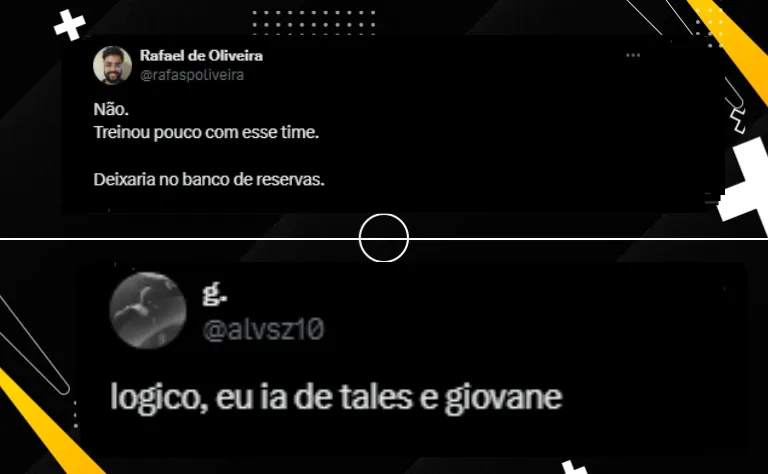 Ainda assim, a maior probabilidade é que ele comece no banco. Dessa forma, uma provável escalação tem: Hugo Souza; Fagner (Matheuzinho), Félix Torres, André Ramalho e Hugo; Raniele, Charles, Ryan (Pedro Henrique) e Rodrigo Garro; Romero e Giovane (Talles Magno).