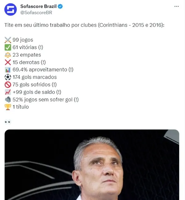 Tite pretende manter o seu patamar financeiro para 2024 ou até conseguir elevar seus vencimentos. O treinador ganhava R$ 1,6 milhões na Seleção Brasileira, acumulando algo em torno de R$ 19,7 milhões ao ano, e para retornar, o Corinthians tem essa, entre outras condições pelo comandante.