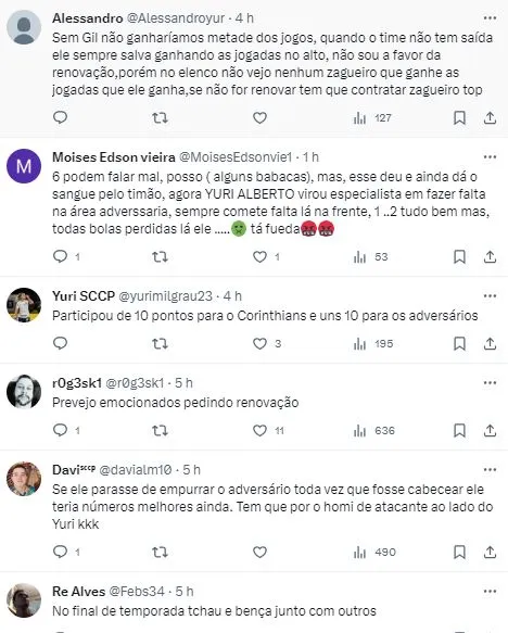 “O Corinthians não fez uma boa partida. Faltam 40 dias para acabar o campeonato, vão querer que o Corinthians voe agora? Time precisa pontuar. É torcer hoje contra o Santos, que enfrenta o Coritiba e vencer o clássico de domingo. Não teve nenhum jogador do Corinthians com brilho contra o Cuiabá a não ser o zagueiraço Gil, que jogou muito”, disse Vampeta, durante participação no programa Bate Pronto, da Jovem Pan.