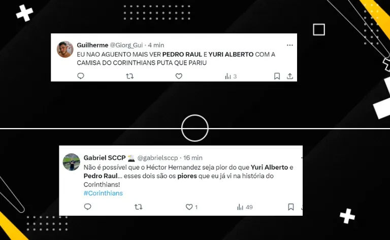 “Yuri Alberto é Pedro Raul não deveriam pisar nesse time nunca mais. Depois desse jogo, é caso de rescisão imediata”, desabafou um corinthiano na rede social do X neste domingo (25).