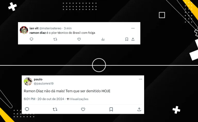 “Ramon Diaz não dá mais! Tem que ser demitido HOJE”, disse um torcedor na web após o empate por 0 a 0. “Parece que é o Corinthians que tem um jogador a menos. Quanta desorganização”, apontou outro corinthiano na rede social do X.