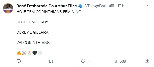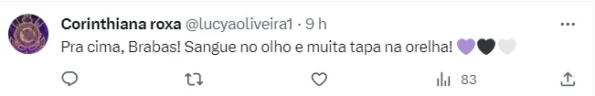 Como já é típico em dias de Derby, os torcedores escreveram frases como: “Vai pra cima da Porcada”, “Hoje é guerra” e “Agora é hora de colocar o coração na ponta da chuteira”. Às mensagens também refletem a importância que o público brasileiro vem dando ao futebol feminino, modalidade que sempre lutou por direitos iguais ao futebol masculino e um maior apoio da sociedade. Confira abaixo mais alguns dos comentários.