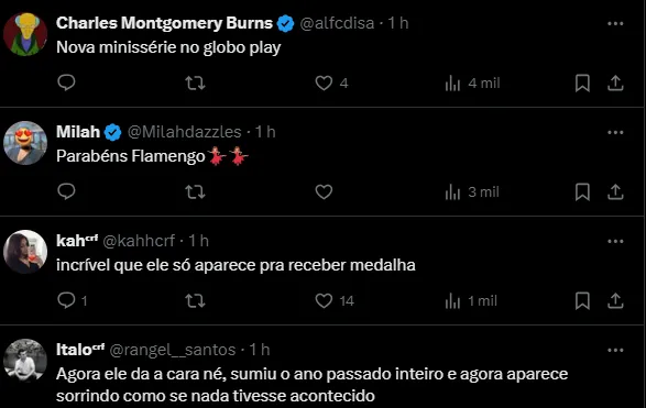 “Teve uma pequena lesão, por isso que não jogou ele e o Wesley, mas já deve estar perfeitamente disponível. É jogador do Flamengo até o fim do ano. Eu sou presidente. Ele não vai sair, a torcida pode ficar tranquila” cravou Landim.