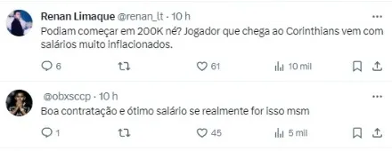 A questão é que seu salário também acabou ‘vazando’ e surpreendeu muita gente: de acordo com informações do jornalista Jorge Nicola, o 1º reforço do novo presidente corinthiano, que terá contrato de 5 anos, vai receber R$ 350 mil mensais, com aumentos de R$ 20 mil anuais.