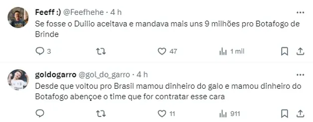 Alguns ainda citaram o antigo dirigente, Duílio, que na sua gestão a possibilidade era de que o centroavante provavelmente seria aceito para vestir a camisa do time do povo.