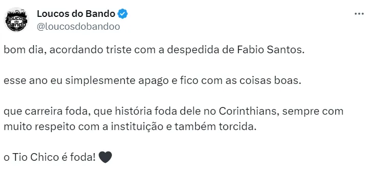 uma má fase não apaga a sua história com a camisa do corinthians. obrigada por tudo, fábio santos 🤍 pic.twitter.com/UPb1gtefmX