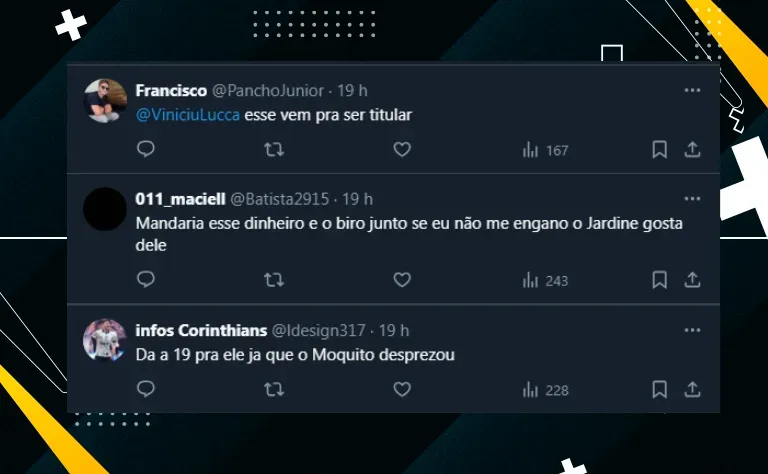 Dito isso, de olho na tentativa de melhorar o seu plantel, o Corinthians está atrás de alguns reforços. Além do já anunciado Hugo Souza e de Alex Santana, Balotelli e outros nomes vêm sendo cogitados no Timão.