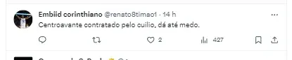 Conforme a apuração do comunicador, que cobre o Alvinegro do Parque São Jorge, um novo centroavante já tem acordo encaminhado para fechar com o Corinthians. Vale destacar que o nome dele está sendo mantido em sigilo.