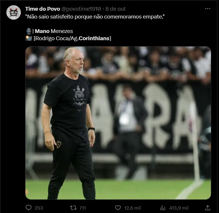 Com isso, Mano visa deixar claro que o caminho para a permanência no Parque São Jorge é conseguir aplicar nos próximos jogos sendo trabalhados nos treinamentos. Nas conversas que vem ocorrendo nos bastidores, o comandante tenta motivar os jogadores. Durante entrevista para o canal de TV do Corinthians no YouTube, Mano Menezes reforçou o discurso que vem sendo trabalhado durante os treinamentos aos jogadores.
