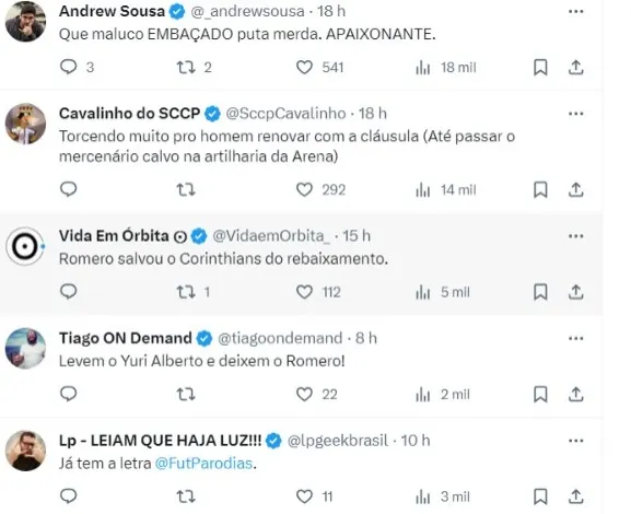 Romero retornou ao Corinthians no início deste ano e teve momentos de altos e baixos durante toda a temporada. Desde a chegada de Mano Menezes, Romero engrenou e foi responsável por sete gols no Brasileirão, todos, inclusive, salvando o Timão de um possível rebaixamento.
