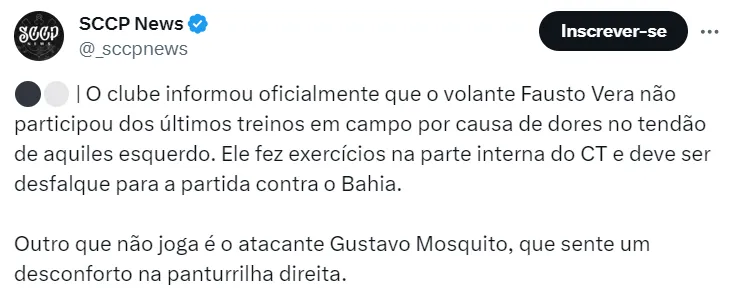 Com um custo de cerca de 40 milhões de reais por 70% dos seus direitos econômicos, Fausto Vera tem contrato ativo com o Corinthians até o final de junho de 2026.