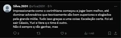 Com esse resultado, o Alvinegro do Parque São Jorge chegou a cinco pontos conquistados em cinco jogos disputados. O Timão somou uma vitória, dois empates e duas derrotas.