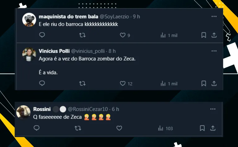 Posto isso, uma das polêmicas envolvendo a saída de Eduardo Barroca foi o comentário do lateral Zeca no Instagram. Com a oficialização de sua saída, o jogador fez o seguinte comentário: “Vai com Deus, tchau“.