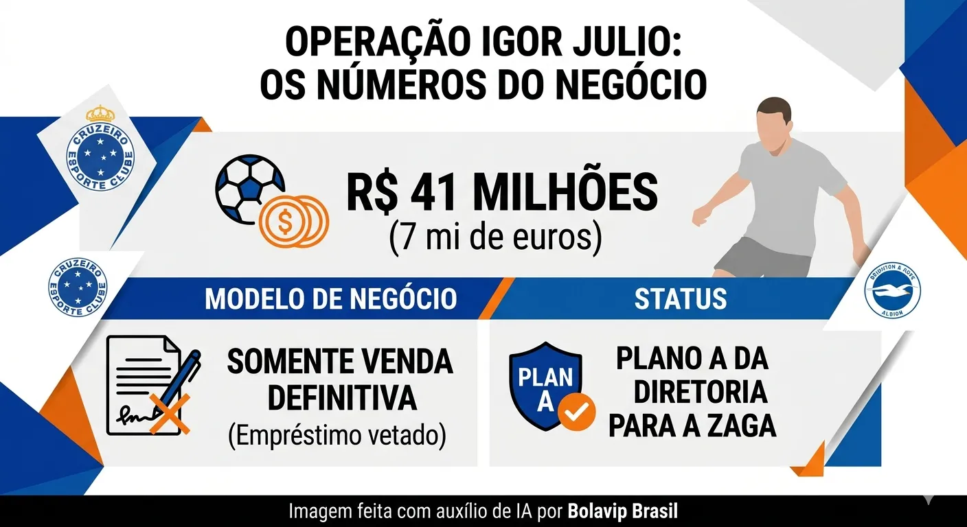O grande alvo do Cruzeiro no mercado neste momento é a contratação de um zagueiro, que chegue para ser titular e o nome desse defensor seria Igor Júlio, do Brighton, da Inglaterra.