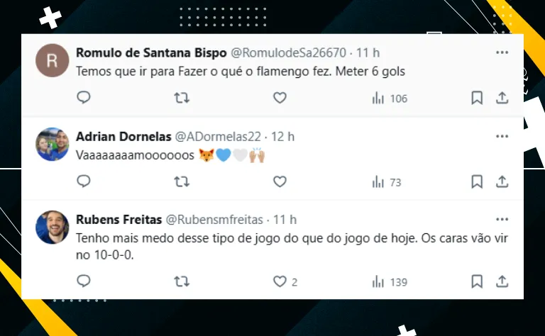 Por último, a única esperança do torcedor do Jaconero é o fato do Clube de Caxias do Sul não ter atuado no meio da semana. A partida contra o Vasco da Gama foi adiada por conta da Sul-Americana. Veja alguns comentários de cruzeirenses mirando a partida de domingo (20), às 16h: