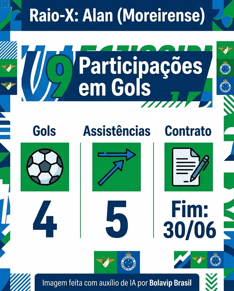 Alan vem em uma temporada muito boa com a camisa do Moreirense. Na Liga Portuguesa, o brasileiro tem 9 participações em gols em 29 partidas, tendo feito 4 gols e dados 5 assistências.