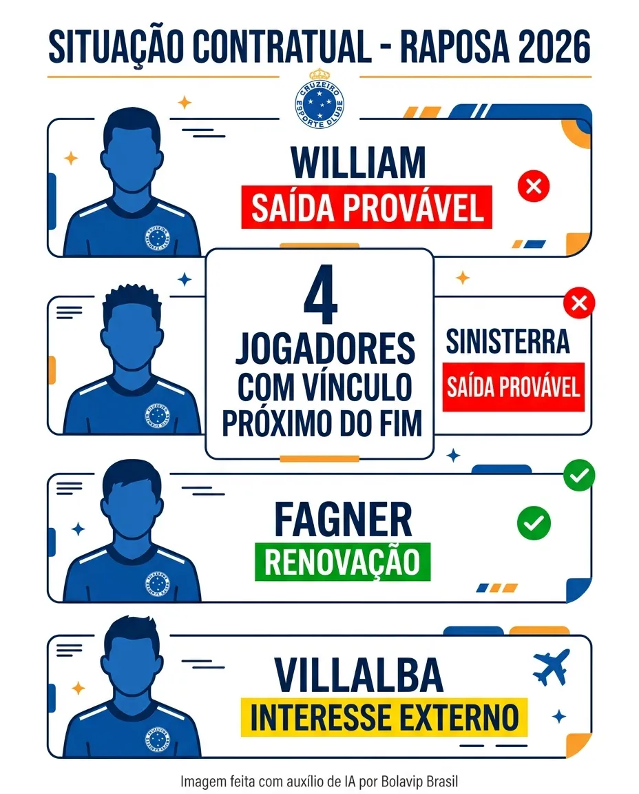 Uma lista de atletas do elenco do Cruzeiro chama atenção por causa de seus contratos se encerrando no decorrer desta temporada. Ao todo, quatro nomes estão nessa situação da na Toca da Raposa.
