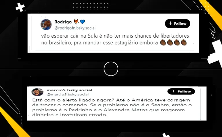 Com isso, a pressão em cima do treinador Fernando Seabra ficou ainda maior. Com isso, torcedores do Clube Mineiro estão divididos sobre sua demissão, por conta do que a equipe vem apresentando.