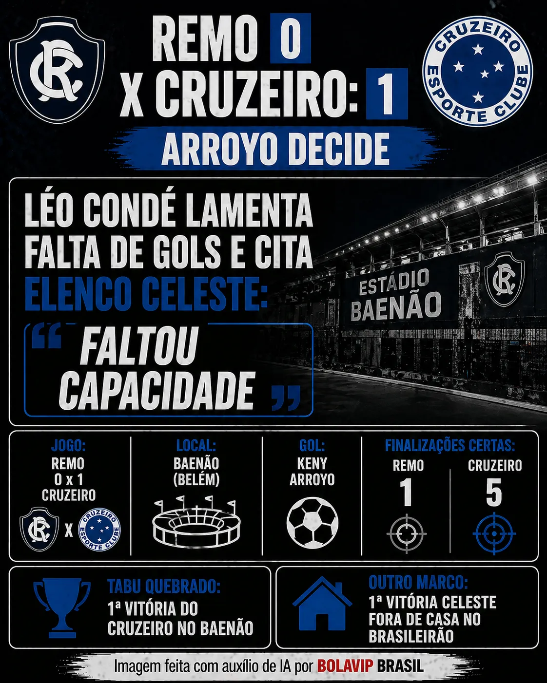 Com gol solitário marcado por Keny Arroyo, o Cruzeiro conseguiu uma vitória importantíssima diante do Remo. Em Belém, os comandados de Artur Jorge conseguiram equilibrar a partida, mesmo em um cenário complicado.