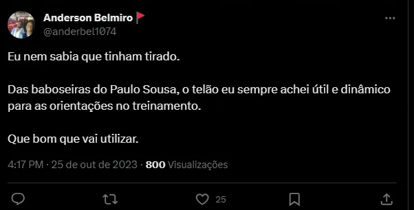 Após a saída do português, passaram pelo Flamengo Dorival Júnior, Vítor Pereira e Jorge Sampaoli, mas nenhum do trio utilizou o equipamento. Agora, o telão está de volta e pode ser um dos ‘diferenciais’ do Flamengo em busca de uma vaga direta à Libertadores e quem sabe até mesmo o título do Campeonato Brasileiro.